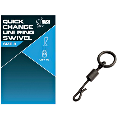 Extremely strong ring swivel with a secure quick-change connection, ideal for quick-change rigs with a loop on helicopter mounts. Content: 10 pieces.