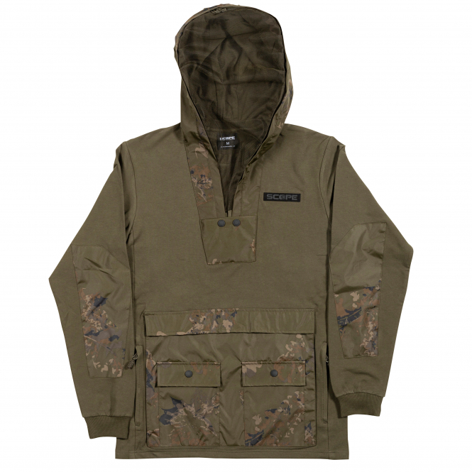 The Nash Scope Lite Hoody is the perfect garment for the summer when the day starts or ends and you need something warmer than a T-shirt. The Scope Lite Hoody looks extremely good and is very comfortable to wear. Made from a blend of cotton and elastane. In addition, an ingeniously packaged mosquito net has been integrated, which can be pulled in front of the face. A garment that all carp anglers have been waiting for to sleep well or to handle a head torch without being bitten by annoying mosquitoes. This hoddy is equipped with a large pocket with magnetic closure, a kangaroo pocket with fleece lining and 2 front pockets closed with magnets, also suitable for large smartphones. Additionally with waterproof patches on the elbows.