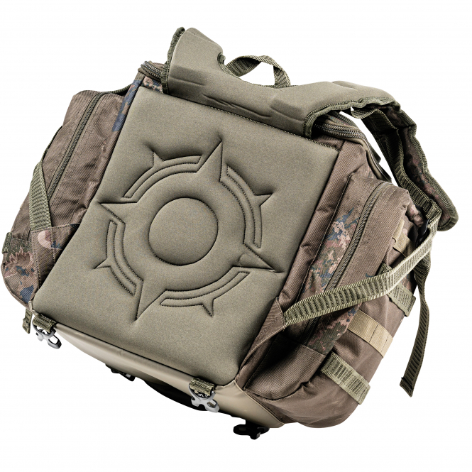 Versatile rucksack with EVA work surface, storage compartments and side pockets for modular systems. Duraflex clips, elastic holders for poles and main compartment for 2 x 5-litre buckets. Padded shoulder straps, carrying handle and waterproof PVC base ensure comfort and protection.