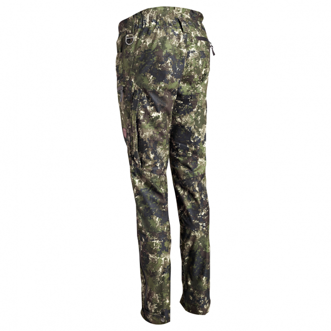 Made from an exceptionally quiet, waterproof and windproof lightweight fabric for a comfortable fit. The licensed Tecl-Wood camouflage print is designed specifically for Nordic forests, but is also ideal for those trips to the water. Features roomy pockets with sealed zippers, D-ring and zipper at the foot ends for easier on and off. Colour: Tecl-Wood camo.