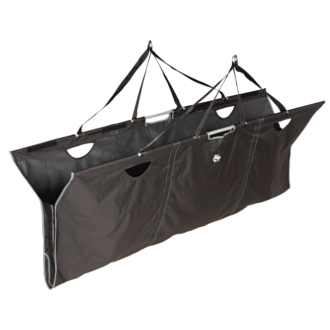 The Perca Waller Catfish Weigh Sling is made of a robust and durable polyester weave material. This xxl sling protects the large catfish from damage while landing and weighing the fish.The sling has two sectioned aluminium poles for extra stability and rigidity when out of the water. The 4 wide, reinforced, webbing straps are fitted with strong metal rings to help hanging the sling on the scales. The sling has 2 zippered openings at either end for easy access. The sling comes with a transport bag. Sling dimensions: 225 x 175 cm, transport dimensions: 120 x 20 cm.