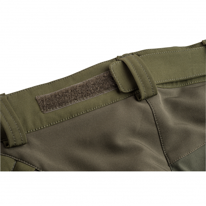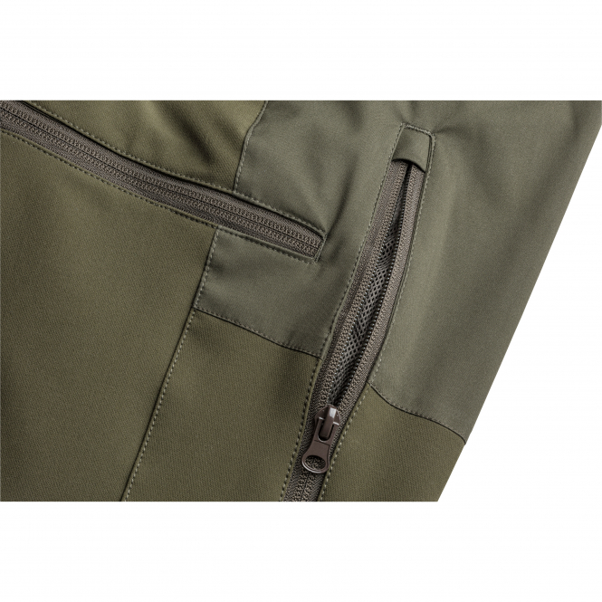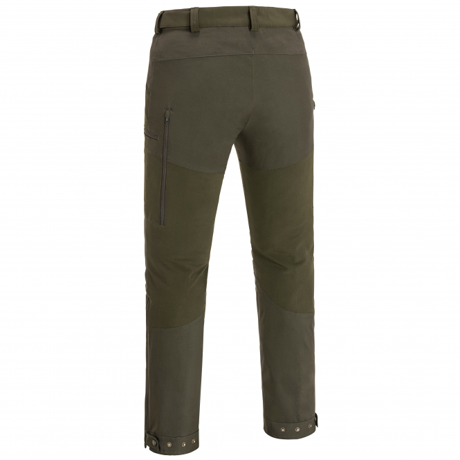 Functional outdoor pants made of comfortable 4-way stretch material. With Velcro adjustable waist, shoe hooks on the inside of the lower leg, 4 zippered pockets, ventilation zippers in the thigh area and at the end of the leg, Bionic Finish® Eco waterproofing and reinforcements in stretchy 3-layer fabric with laminated membrane on the seat and lower leg. Breathable, windproof and waterproof. Water column: 18,000 mm, breathability: 22,000 g/m²/24h. Colour: dark olive/suede brown.