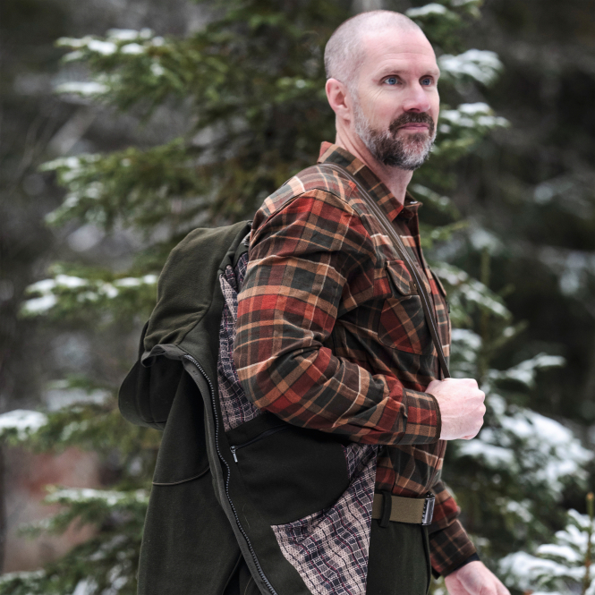 This men's shirt made of soft cotton with press studs offers natural comfort and is colour-coordinated with our tried-and-tested trouser styles. Two chest pockets with flaps and press studs, one security pocket with zip. Colour: olive/red.