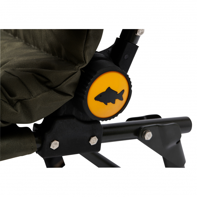 A lightweight, comfortable chair with armrests and adjustable legs with swivel mud feet. Made from MCP waterproof and breathable material. Soft neoprene headrest with removable Air-Tex armrest covers. Seat height: 40–52 cm. Dimensions: 61 x 55 x 73 cm. Weight: 7 kg.