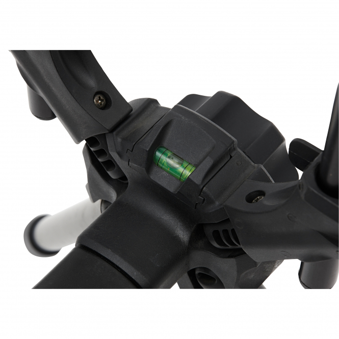 With integrated spirit level. Adjustable length: 107 cm to 175 cm. Adjustable height: 60 cm to 80 cm. Buzz bars: 40 cm and 45 cm. Transport length: 105 cm. Transport weight: 4.08 kg. Includes transport bag.