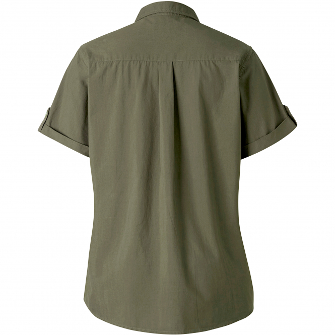 The Safari short-sleeved blouse is just as comfortable in active everyday life as it is on a variety of hiking trails or adventure trips. Pre-washed, soft material and beautifully velvety to the touch, the polyester-cotton blend not only ensures a comfortable fit, but also improved moisture transport. This also allows the blouse to dry quickly if things get a little sweaty. Button placket, 2 breast pockets with buttons, feminine cut, plus: a timeless design that goes well with jeans or hiking trousers. Colour: moss green.