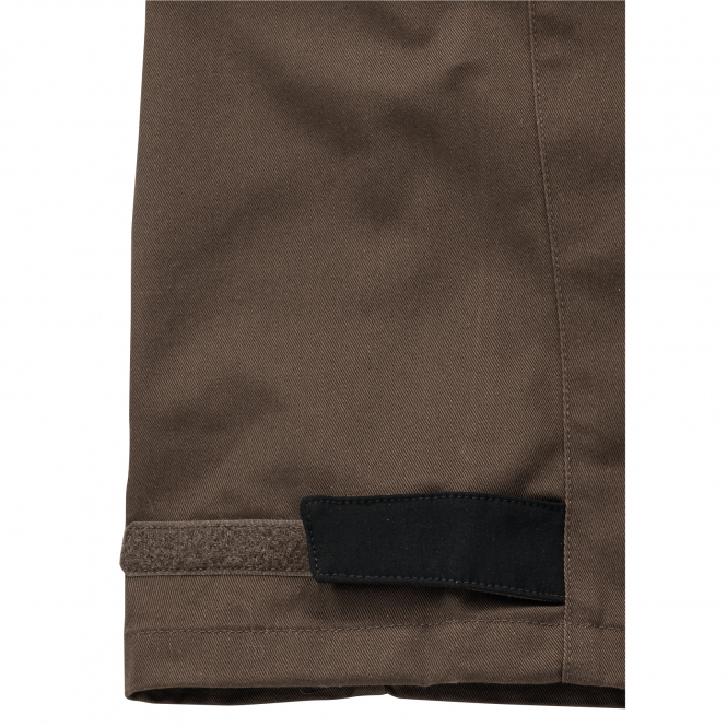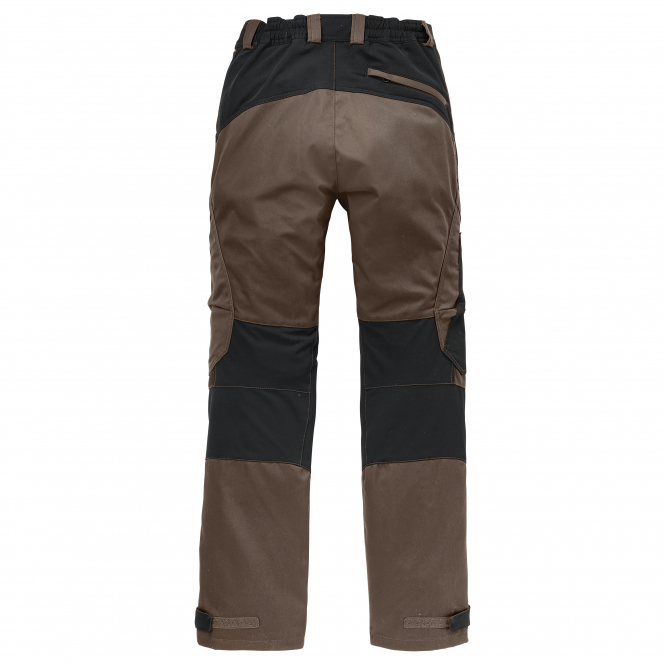 Developed with Deerhunter exclusively for Askari. A mix of the stretch material of the Deerhunter Strike trousers and the robust fabric of the well-known Rogaland series. The hunting trousers are perfect for outdoor use, both for hunting and for hunting ground work. They are water repellent and breathable. They also have pleats for movement and a pre-shaped knee area to ensure excellent freedom of movement and wearing comfort. There is plenty of storage space thanks to the many pockets, such as the two push pockets, zipped side pockets and two small pockets underneath and a back pocket. The leg ends are adjustable with Velcro and ensure the perfect fit. A small Deerhunter embroidery decorates the trousers on the upper right leg. Produced according to OEKO-TEX 100 standard. Colour: black with contrasting brown.